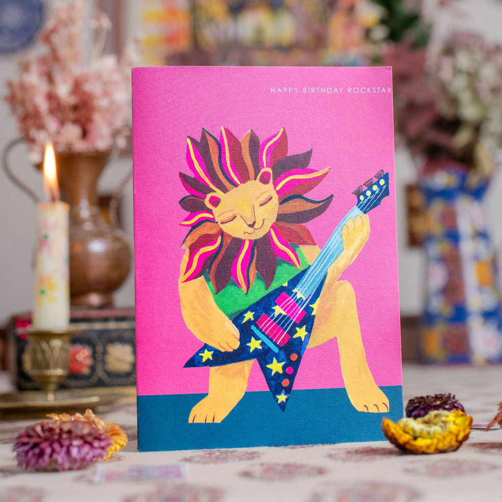 Add a touch of happy joyful magic to your loved one's birthday with this brand new joyful lion ready to rock! The colourful design is sure to bring a smile to their face and set the perfect celebratory tone for their special day, with wording 'HAPPY BIRTHDAY ROCKSTAR'